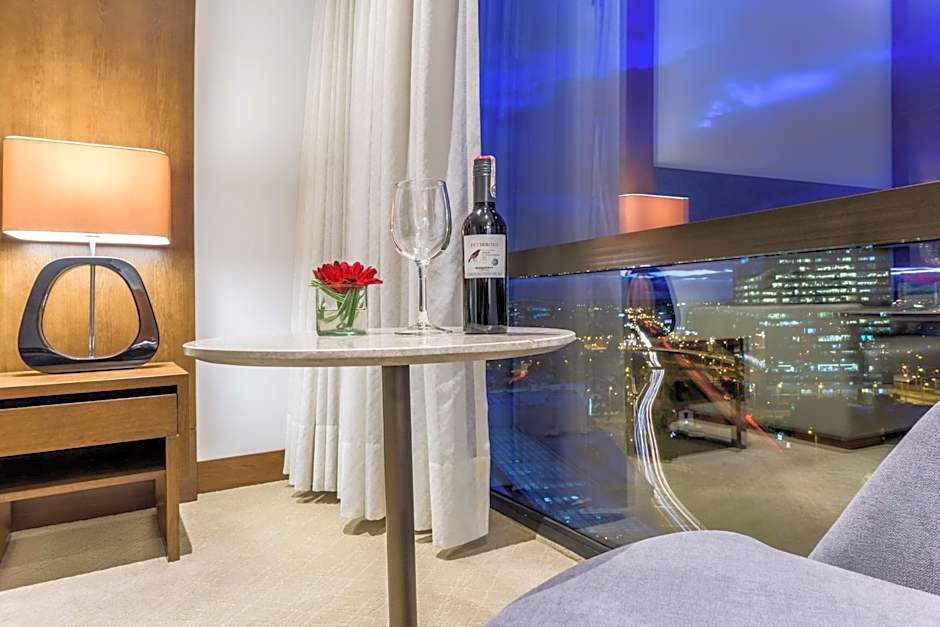 Features air conditioning, mini-bar, cable TV and private bathroom. It has a desk, mini-bar, safety box and coffee machine.